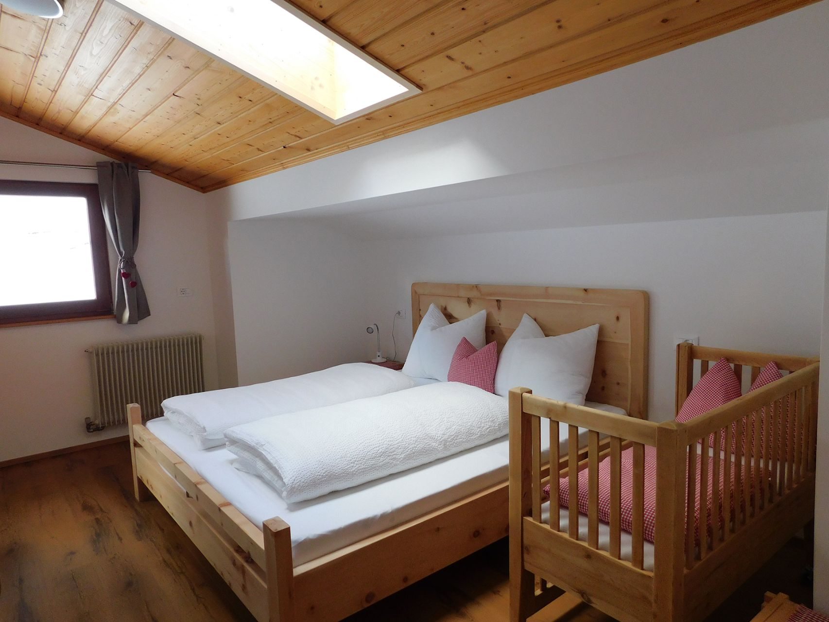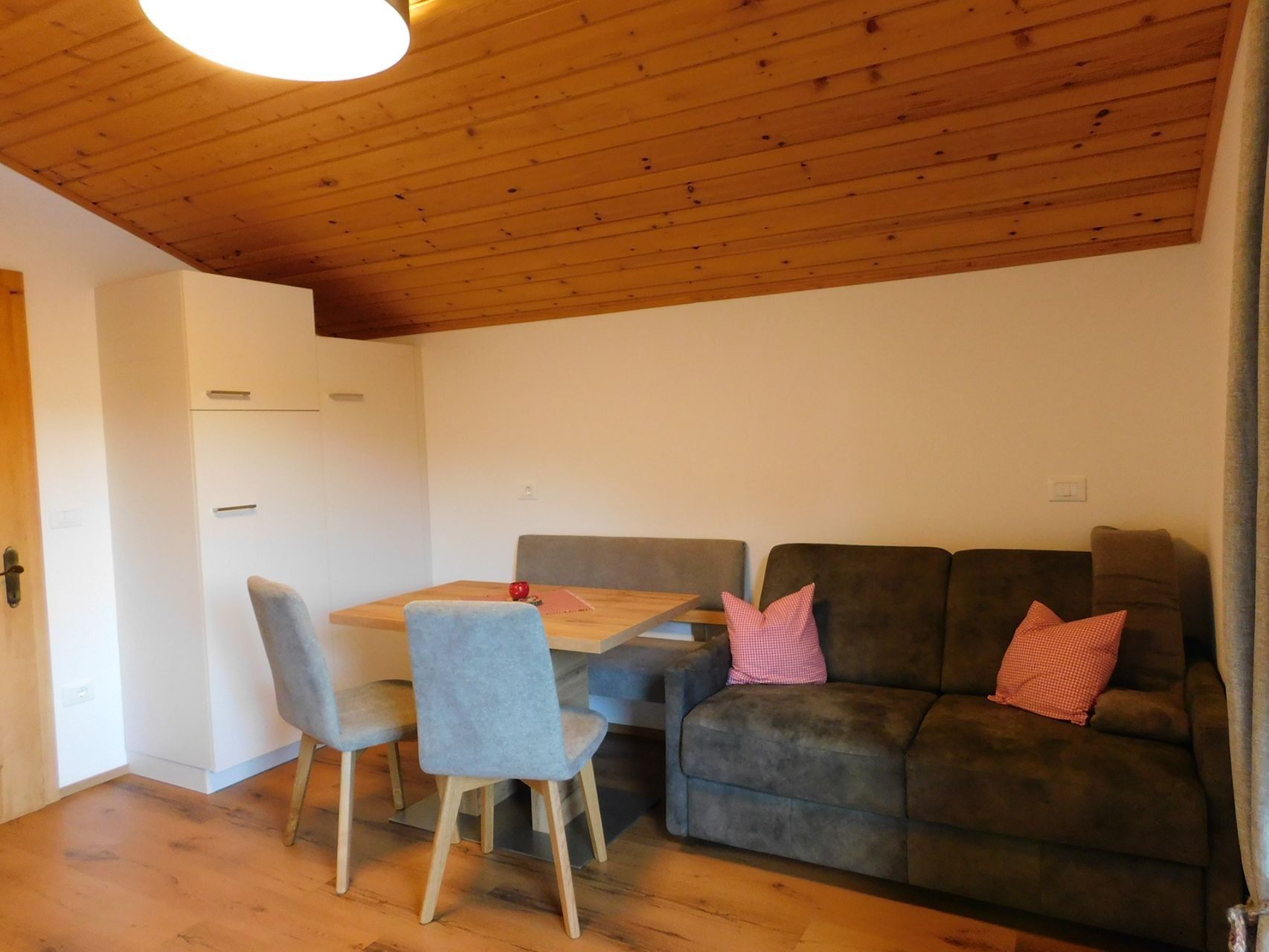 L'appartamento "Karspitz" ha una superficie di 37m² e dispone di una cucina abitabile con divano letto e una camera matrimoniale con bagno privato e doccia. Il balcone offre una splendida vista sulle Odle e la Plose.